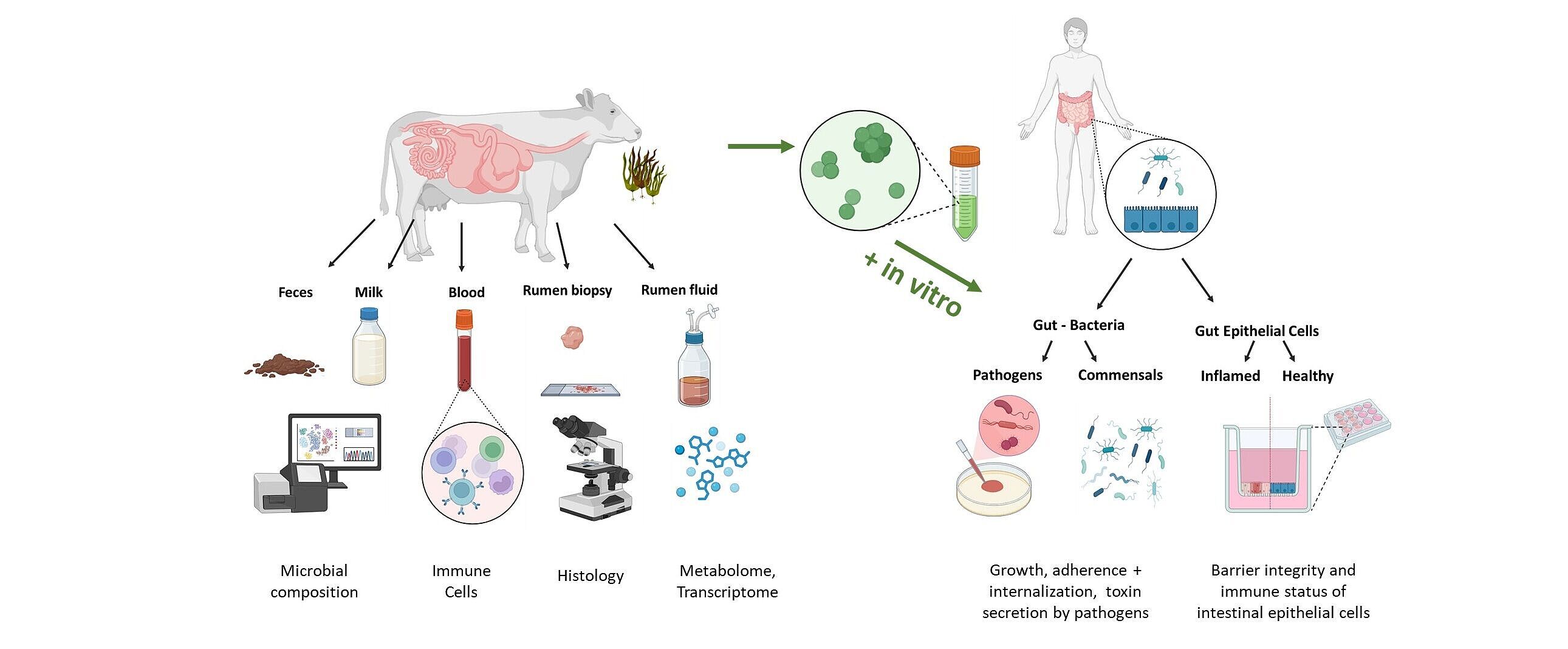 Prof. Dr. Bernd Kreikemeyer's team is using human intestinal epithelial cells in a co-culture model under physiological and inflammatory conditions to evaluate/study potential therapeutic effects of algae extracts. Furthermore, the effect of extracts on both beneficial and pathogenic gut bacterial will be investigated.