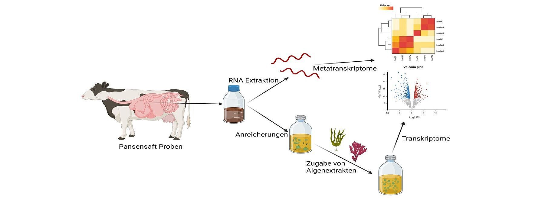 Methanogene Archaeen werden aus dem Pansen von Rindern angereichert und isoliert. Die gewonnenen Isolate werden unterschiedlichen Konzentrationen von Algenextrakten ausgesetzt und die Auswirkungen auf die Methanogenese werden anhand von Wachstumsversuchen und Genexpressionsanalysen untersucht.
